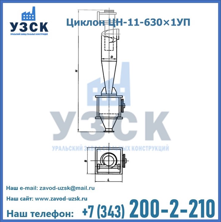 Уральский Завод Стальных Конструкций в Серпухове производит и продает надежное, эффективное и производительное оборудование, имеющее длительную гарантию и большой эксплуатационный ресурс. УЗСК также предлагает циклоны из нержавеющей стали высокого качества. По желанию заказчика толщина стали для циклона и бункера может быть увеличена. Заказать и купить циклоны ЦН-11 высокого качества и по доступной цене можно через наш сайт или по указанному в разделе «Контакты» телефону.