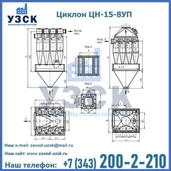 Завод «УЗСК» в Серпухове предлагает большой выбор циклонов ЦН-15-500×8УП и прочих устройств, полностью укомплектованных и готовых к эксплуатации. Мы гарантируем соответствие оборудования всем требованиям ГОСТ и ТУ, износостойкость и высокую производительность предлагаемого оборудования. Уральский Завод Стальных Конструкций изготавливает и продает надежное, эффективное и производительное оборудование, имеющее длительную гарантию и большой эксплуатационный ресурс. Если требуется изготовить циклон нестандартных размеров, то такой вариант выполнения заказа тоже предусмотрен, так как предприятие имеет собственные производственные площади и надежных поставщиков. На все поставляемое или производимое оборудование имеются чертежи и прочая техническая документация. Заказать и купить циклоны или прочее оборудование высокого качества и по доступной цене можно через наш сайт или по указанному в разделе «Контакты» телефону.