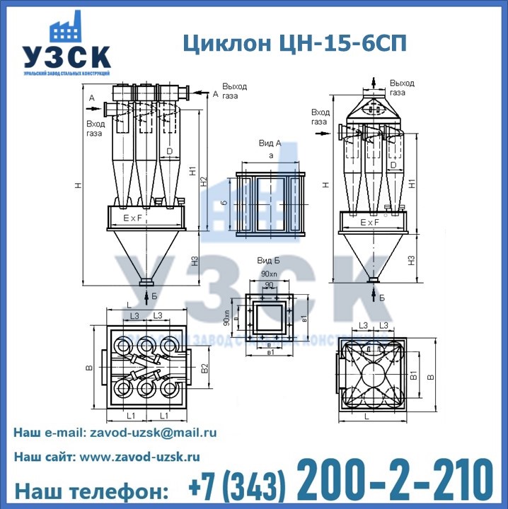 Завод «УЗСК» в Серпухове предлагает большой выбор циклонов ЦН-15-700×6СП и прочих устройств, полностью укомплектованных и готовых к эксплуатации. Мы гарантируем соответствие оборудования всем требованиям ГОСТ и ТУ, износостойкость и высокую производительность предлагаемого оборудования. Уральский Завод Стальных Конструкций изготавливает и продает надежное, эффективное и производительное оборудование, имеющее длительную гарантию и большой эксплуатационный ресурс. Если требуется изготовить циклон нестандартных размеров, то такой вариант выполнения заказа тоже предусмотрен, так как предприятие имеет собственные производственные площади и надежных поставщиков. На все поставляемое или производимое оборудование имеются чертежи и прочая техническая документация. Заказать и купить циклоны или прочее оборудование высокого качества и по доступной цене можно через наш сайт или по указанному в разделе «Контакты» телефону.