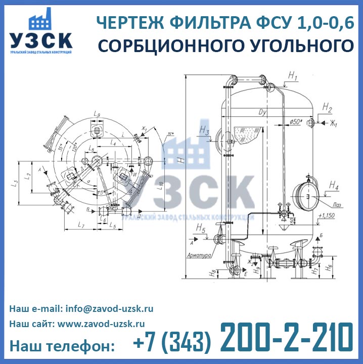 Наш завод (Уральский завод стальных конструкций) является производителем угольных фильтров, сам осуществляет изготовление и реализацию выпускаемой продукции. Приобретая фильтры ФСУ-1.0-0.6 в Серпухове от производителя, Вы приобретаете оборудование без наценок всевозможных посредников, а также значительно экономите свое время. Фильтры ФСУ1.0-0.6 завода УЗСК – это гарантия качества, кратчайшие сроки изготовления и цена, которая Вам понравится.