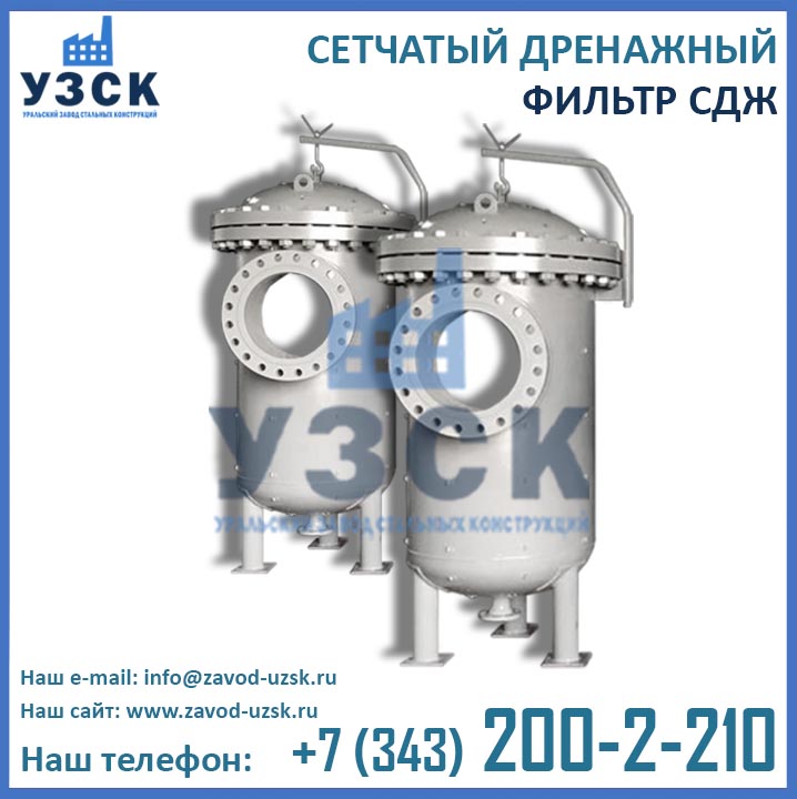 Уральский завод стальных конструкций является ведущим производителем дренажных фильтров в Серпухове и по всей России. Также завод УЗСК осуществляет поставки сетчатых фильтров СДЖ в страны ЕАЭС: Казахстан, Армению, Белоруссию и Киргизию. Высокое качество продукции подтверждено соответствующими документами (сертификаты/декларации), осуществляются гидравлические испытания готовых изделий на аттестованном гидростенде завода.