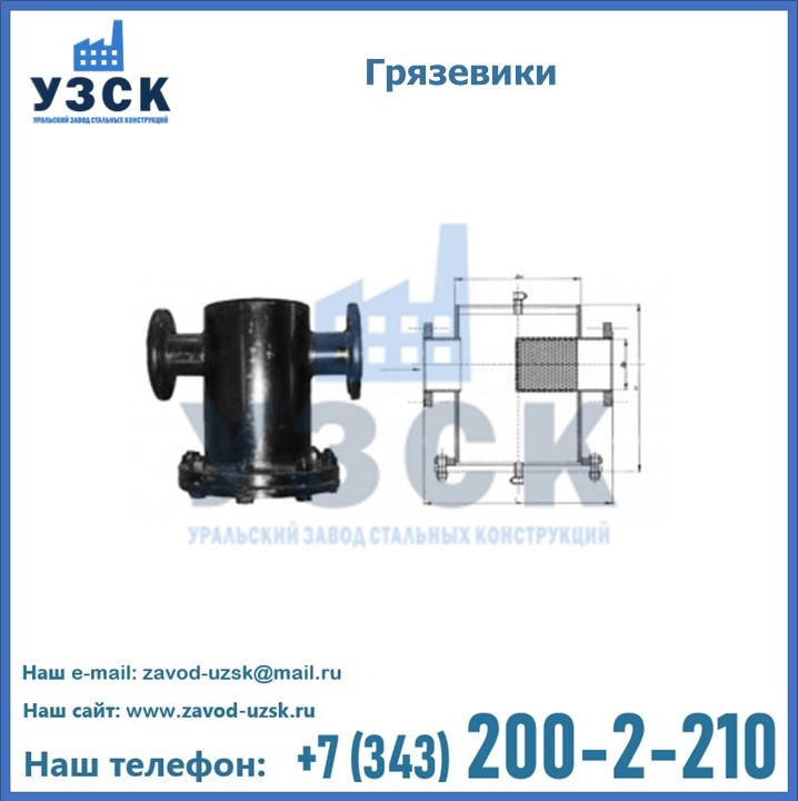 Уральский Завод Стальных Конструкций занимается производством и реализацией грязевиков в городе Серпухов, в наличии устройства горизонтального и вертикального типа, соответствующие всем требованиям и стандартам, в том числе условиям «Правил устройства и безопасной эксплуатации».
