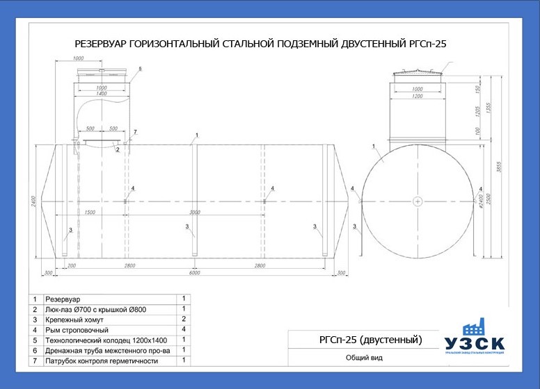 РГСДн-25: горизонтальный резервуар двустенный наземного расположения;